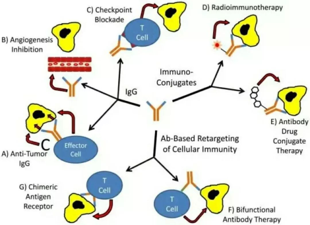 癌细胞上有一些特殊的抗原,人类使用免疫学抗体原理清除他们以达到治疗癌症的目的,这些治疗取得了一定疗效。